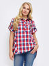 Повседневная хлопковая рубашка с удлиненной спинкой. Пуговицы на полочке не функциональные. Классический рубашечный воротник. На полочке предусмотрен накладной карман, украшеный декоративной нашивкой. Рукав короткий с хлястиком. Модель отлично подойдёт для образа в стиле casual.