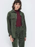 Вельветовая рубашка oversize. Полочка изделия дополнена крупным накладным карманом с одной стороны, с другой – декорирована клапаном. Застегивается на кнопки по всей длине.