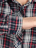 Детали: отложной ворот с острыми углами на стойке, застежка на пуговицах, модель двусторонняя, два накладных нагрудных кармана с листочком на пуговице, длинный однокроеный рукав посажен на манжету с пуговицей.