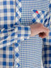 Отличная рубашка выполнена из хлопка. Модель с отложным воротником и длинными рукавами. Изделие дополнено застежкой на пуговицы. Рубашка декорирована рисунком в клетку.