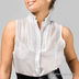 Стильная рубашка без рукавов с воротником-стойкой. Спереди рубашка декорирована простроченными складками. Низ платья с защипами. Пояс-резинка контрастного черного цвета идеально подчеркнет Вашу талию.