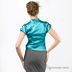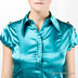 Стильная рубашка с отложным воротником и короткими рукавами-фонариками, декорированными золотистыми пуговицами. Рубашка выполнена из ткани с атласным блеском, что делает ее более нарядной.