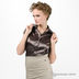 Стильная рубашка с отложным воротником и короткими рукавами-фонариками, декорированными золотистыми пуговицами. Рубашка выполнена из ткани с атласным блеском, что делает ее более нарядной.