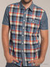 Замечательная рубашка с отложным воротником и короткими рукавами. Спереди удобная застежка на пуговицы. Изделие украшено модным рисунком в клетку.