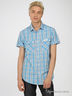 Рубашка хлопчатобумажная с коротким рукавом. Прямой силуэт. Отложной воротник. Планка-застежка на пуговицах. Два накладных кармана с клапанами, застегиваются на пуговицы. Декоративные хлястики на рукавах.