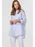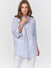 • Особенности: Рубашка из хлопковой ткани в полоску. Детали: отложной воротник на стойке, планка с застежкой на петли и пуговицы, накладные карманы. Втачной рукав с рубашечной проймой на манжете. Низ изделия криволинейный.