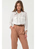 • Особенности: Рубашка прямого силуэта из блузочной ткани. Детали: отложной воротник на стойке, накладные карманы с клапанами по переду, клапаны застегиваются на петлю-пуговицу, широкие рукава. Застежка на петли-пуговицы по переду.