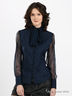 Комфортная и романтичная рубашка приталенного покроя. Воротник стойка декорирован шифоновым шарфом. Рубашка застегивается на пуговицы. Шифоновые рукава с манжетами на пуговицах украшены защипами.