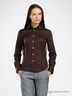 Приталенная хлопковая рубашка. Отложной воротник на стойке. Застегивается на планку с пуговицами. Длинные рукава с манжетами на пуговицах.