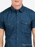 Детали: отложной воротник, застежка на пуговицы, короткий прямой рукав декорирован хлястиком, продетым в шлевки, два накладных кармана с клапанами на пуговицах.