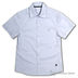 Классическая рубашка прямого кроя. Отложной воротник, застежка на пуговицы. Короткий прямой рукав. Низ изделия декорирован вышивкой в виде логотипа бренда. На полочке небольшой кармашек.