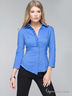 Замечательная рубашка с рукавами 3/4 и отложным воротником. Модель приталенного кроя выполнена из качественного материала привлекательной расцветки. Спереди - застежка на пуговицы и рюши. Отличный вариант на каждый день.