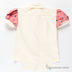 Детали: отложной ворот-стойка, короткий рукав-фонарик, застежка на пуговицы, контрастные рукава и планка-застежка