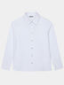 Если ребенок активен, энергичен, привык к свободе движений, белая рубашка с длинным рукавом, выполненная из кроеного трикотажа, - отличная альтернатива сорочке! Рубашка очень комфортна, пластична, приятна к телу, что делает ее превосходным повседневным вариантом для школьника любого возраста. Оригинальная застежка на кнопки, наружная часть которых повторяет пуговицу, создает интересный визуальный эффект.