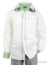 Модная рубашка с длинным рукавом смотрится эффектно за счет комбинации основного и двух дополнительных полотен: яркой орнаментальной ткани в мелкий горошек на стойке, манжетах и внутреннем пластроне и легкой джинсы на окантовке воротника и налокотниках. В качестве небольшого акцента используется линеарная вышивка.