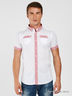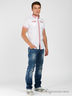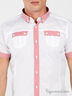 Детали: отложной ворот, манжеты короткого рукава, клапаны накладных карманов и планка с пуговицами контрастного цвета; застегивается на пуговицы