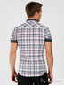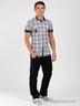 Детали: отложной ворот и манжеты короткого рукава ан пуговицах; два кармана; застежка на пуговицы; принт - клетка