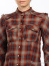 Детали: воротник стойка, застегивается на кнопки, на полочке 2 накладных кармана с клапанами на кнопках, декорирована вставками с необработанными краями