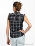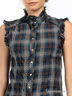 Детали: воротник стойка, застегивается на кнопки, без рукавов, декорирован оборками с необработанными краями