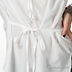 Стильная белая рубашка удлиненного покроя с поясом в виде ленты. Дополнительные сборки и вставки придают рубашке изящность и подчеркивают фигуру.