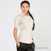 Рубашка с коротким рукавом-фонариком на манжете и с погонами на плечах. Спереди два накладных кармана. Материал стрейчевый.