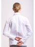 Рубашка с пуговицами, верхняя часть фиксируется кнопкой. На манжетах черные кнопки.