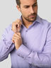 Превосходная классическая приталенная рубашка из стильной итальянской ткани Albini премиум-класса, очень комфортной и приятной в носке. Лиловый цвет и узор "елочка" идеально подходят для серьезных деловых встреч. Модель с длинными рукавами, отложным воротником и застежкой на пуговицы.