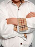 Прекрасная хлопковая рубашка лаконичного исполнения. Модель с длинными рукавами и отложным воротником. Спереди - застежка на пуговицы.