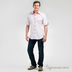 Стильная мужская рубашка из 100 % хлопка. Рубашка в стиле Casual с классическим воротником на одной пуговице и жесткими пластиковыми вставками для сохранения его формы. Короткий рукав с декоративной отделкой из красной ткани. Для отделки внутренней стойки воротника выбрана однотонная красная ткань. Изысканность рубашки подчеркивают квадратные темные пуговицы. Треугольный клин из красной ткани, вшитый между полочкой и спинкой рубашки, добавляет элегантности.