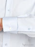 Детали: отложной воротник, застежка на пуговицы, длинный прямой рукав с высокой манжетой на две пуговицы