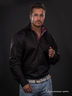 Стильная мужская рубашка из гладкой хлопковой ткани. Стояче-отложной ворот. Застежка на планку с пуговицами. Длинные рукава с манжетами.