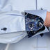 Яркая мужская рубашка с длинным рукавом изготовлена из высококачественного 100% хлопка. Рубашка в стиле CASUAL, очень элегантна и изысканна. Ее можно носить как с костюмом, так и с повседневной одеждой. Модель оригинального кроя с итальянским воротником. Внутренние стороны стойки воротника, манжеты и планка пуговиц отделаны контрастным материалом. Длинный рукав с манжетой на двух квадратных пуговицах. Дополнительно поверх манжеты пришита небольшая пуговица, непозволяющая рукаву раскрыться и оголить руку. К внутренней стороне планки рубашки пришиты 2 запасные пуговицы.