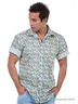 Детали: стоячий-отложной воротник, застежка на планку с пуговицами, короткие рукава, стильный принт.