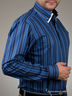 Классическая хлопчатобумажная рубашка прямого кроя. Выполнена из приятного на ощупь материала. Отложной воротник-стойка, длинные рукава с манжетами. Застегивается на пуговицы.