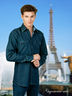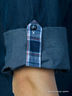 Стильная мужская рубашка из хлопка. Застегивается на пуговицы. Рукава дополнены хлястиком, позволяющим фиксировать рукав в коротком положении.