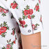 рубашки выбрана контрастная ткань. Изысканность рубашки подчеркивают круглые пуговицы в тон рубашки. Ластовица из красной ткани, вшитая между полочкой и спинкой рубашки, добавляет элегантности.