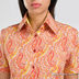 Рубашка в стиле Casual с классическим воротником с жесткими пластиковыми вставками для сохранения его формы. Короткий рукав с двумя пуговицами для регулировки застежки рукава. Для отделки внутренней стойки воротника и пуговичной планки рубашки выбрана желтая ткань. Изысканность рубашки подчеркивают круглые пуговицы в тон рубашки. Треугольный клин из однотонной ткани, вшитый между полочкой и спинкой рубашки, добавляет элегантности.
