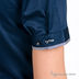 рукава, пуговичной планки и клапана накладного кармана. Изысканность рубашки подчеркивают круглые пуговицы темно-синего цвета. Ластовица из белой ткани, вшитая между полочкой и спинкой рубашки, добавляет элегантности. Эксклюзивность рубашки подчеркивает фирменная вышивка.