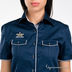 рукава, пуговичной планки и клапана накладного кармана. Изысканность рубашки подчеркивают круглые пуговицы темно-синего цвета. Ластовица из белой ткани, вшитая между полочкой и спинкой рубашки, добавляет элегантности. Эксклюзивность рубашки подчеркивает фирменная вышивка.