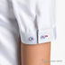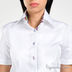 Рубашка в стиле Casual с классическим воротником с жесткими пластиковыми вставками для сохранения его формы. Короткий рукав с двумя пуговицами для регулировки застежки рукава. Для отделки внутренней стойки воротника и пуговичной планки рубашки выбрана ткань с цветочным принтом. Изысканность рубашки подчеркивают круглые пуговицы голубого цвета. Ластовица из контрастной ткани, вшитая между полочкой и спинкой рубашки, добавляет элегантности.