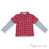 Рубашка прямого силуэта, с эффектом двуслойности, выполнена из тканного клетчатого хлопка и трикотажа. Застежка на пуговицы. На полочках накладные карманы с клапанами. В боковых швах выполнены маленькие разрезы.