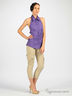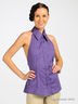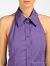 Приталенная рубашка без рукавов с открытой спиной. Отложной воротник. Застегивается на планку с пуговицами. На спинке регулируемый хлястик.