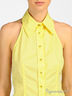 Приталенная рубашка без рукавов с открытой спиной. Отложной воротник. Застегивается на планку с пуговицами. На спинке регулируемый хлястик.