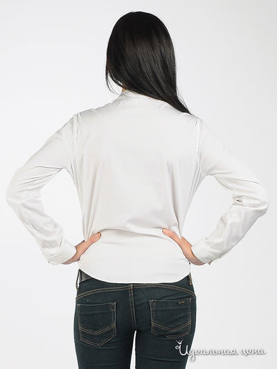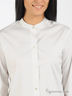 Рубашка в мелкую полоску. Воротник-стойка. Длинный рукав, манжеты фиксируются пуговицей. Свободный силуэт. Планка-застежка с перламутровыми пуговицами по всей длине полочки.