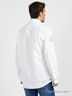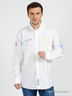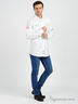 Стильная рубашка из тонкого, плотного хлопкового материала с добавлением эластана. Стояче-отложной ворот, с пристегивающимися на пуговицы кончиками. Застежка на планку с пуговицами. Длинные рукава с манжетами на пуговицах. На полочках и рукавах красочные вышивки. Отличный вариант на каждый день.