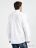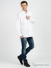 Модная рубашка из тонкого батиста. Стояче-отложной ворот, с пристегивающимися к полочкам кончиками. Застежка на планку с пуговицами. Длинные рукава с манжетами на пуговицах. На полочке и рукаве крупные вышивки, на спинке с внутренний стороны нанесен печатный рисунок, просвечивающий на внешнюю сторону. Яркий и лаконичный дизайн.