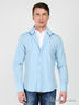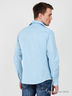 Детали: стоячий, отложной воротник, застежка на планку с пуговицами, длинные рукава с манжетами на пуговицах. Модель декорирована вставками из белого хб материала, имитирующими рубашку.