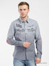 Рубашка с длинными рукавами и отложным воротником. Спереди модель дополнена застежкой на пуговицы, а так же контрастным принтом. Отличный вариант для повседневной носки.