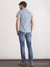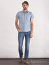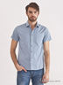 Классическая мужская рубашка из хлопковой ткани. Модель полуприталенного силуэта. Стояче-отложной ворот. Застежка на планку с пуговицами. Короткие прямые рукава. Карман на полочке.