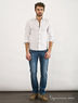 Модная рубашка из гладкой хлопковой ткани. Модель приталенного силуэта. Стояче-отложной ворот. Застежка на планку с пуговицами. Длинные рукава с манжетами. Отлично будет сочетаться с разными по фасону и фактуре вещами.